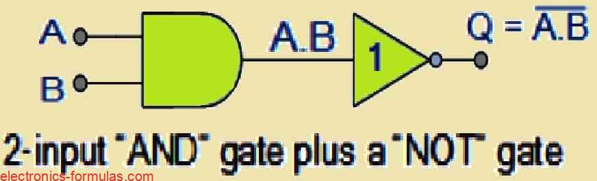 Boolean Expression Q = A.B, we can read as A AND B gives NOT Q